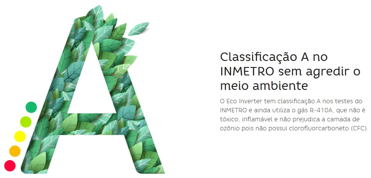 O Eco Inverter conta com um baixo nível de ruído devido a Tecnologia Inverter e ainda é muito mais econômico por fazer menos força para funcionar, consumindo menos energia elétrica.