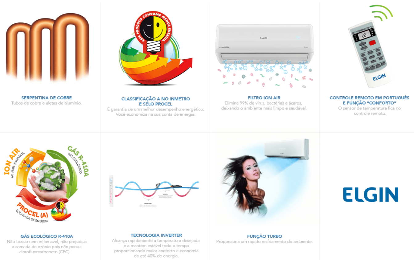 Ar Condicionado Elgin Eco Inverter 9.000 BTU/h Frio (Com a instalação e todo material, somente para Piracicaba e região)