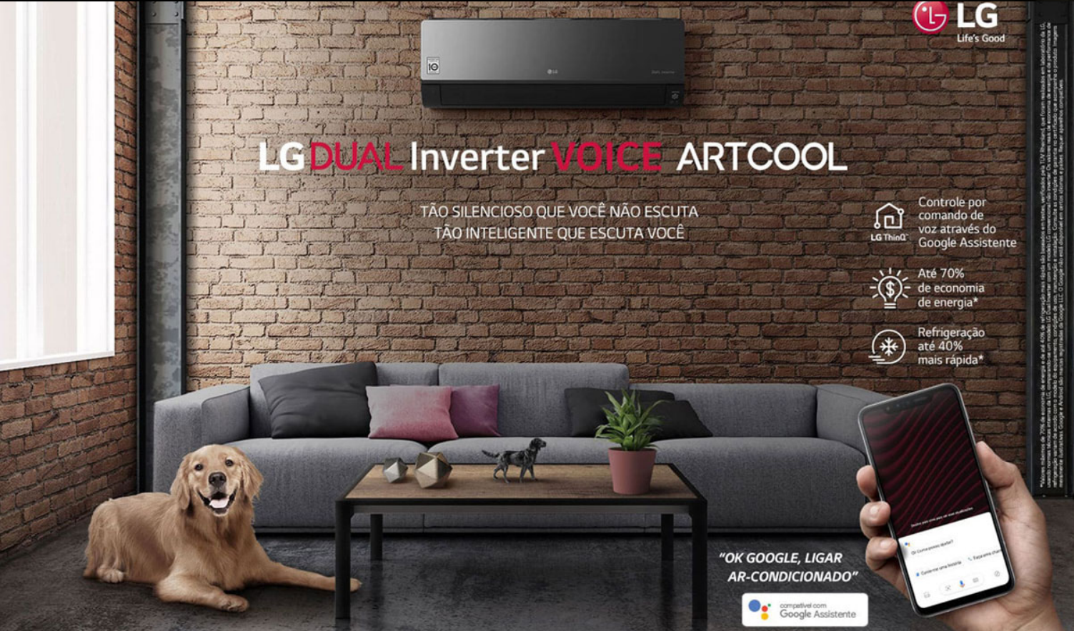 Com o uso do aplicativo LG Thinq e conexão com a internet, o consumidor pode acionar diversas tarefas apenas com o uso da voz. E o melhor: de qualquer hora e lugar!